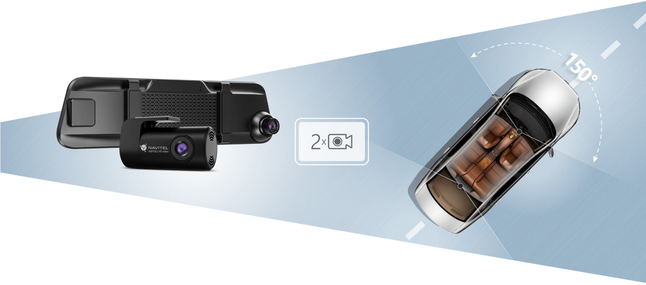 Фронтальная камера видеорегистратора имеет широкий угол обзора 150° и оснащена сенсором SONY IMX335, который обеспечивает чёткое видео 2K (2560x1440 пикселей) как днём, так и ночью. Входящая в комплект дополнительная Full HD камера позволяет не только фиксировать события, происходящие позади автомобиля, но также, благодаря поддержке функции «Контроль слепых зон» (BSD), обеспечивает дополнительную безопасность на дороге. Кроме того, при подключении к фонарю заднего хода автомобиля, камера может использоваться для удобства парковки.